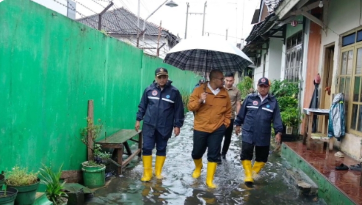 Keterangan Foto : Bupati Batang M. Faiz Kurniawan (tengah), meninjau banjir di Gendingan, Kelurahan Proyonanggan Tengah, Kabupaten Batang.