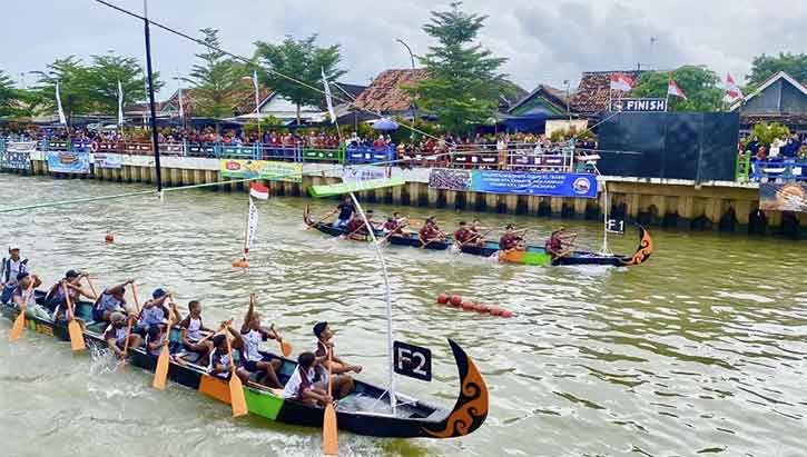 Batang – Event tahunan Lomba Dayung Tradisional Desa Klidang Lor kembali digelar meriah di aliran eks Sungai Sambong, Kabupaten Batang, Minggu (22/3/2026).