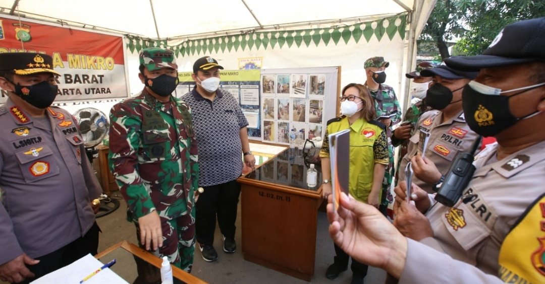 Seorang petugas sempat menunjukan buku tersebut kepada Panglima TNI Marsekal Hadi Tjahjanto dan Kapolri Jenderal Polisi Listyo Sigit Prabowo saat keduanya berkunjung ke Rusun Nagrak dan Posko PPKM Mikro Semper Barat, Jakarta Utara, Minggu (27/6/2021).