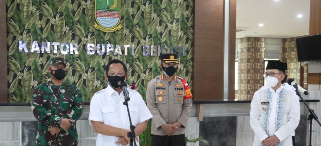 Mendagri mengawali kunjungan kerjanya ke Kabupaten Bekasi, Jawa Barat pada Jumat (23/7/2021). Diketahui, berdasarkan data yang dihimpun Direktorat Jenderal (Ditjen) Bina Keuangan Daerah (Keuda) Kementerian Dalam Negeri (Kemendagri) per 15 Juli 2021, Kabupaten Bekasi termasuk memiliki realisiasi anggaran yang relatif rendah. Tercatat, realisasi pendapatan Kabupaten Bekasi baru sebesar 40,59% dan realisasi belanjanya sebesar 30,62%.