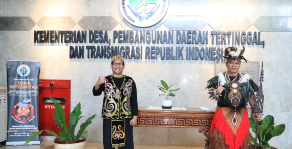 Dalam upacara yang digelar secara hybrid itu, Doktor Honoris Causa dari UNY ini didampingi Wamendes PDTT, Budi Arie Setiadi yang mengenakan busana adat Papua; Sekjen Kemendes PDTT, Taufik Madjid dengan baju khas Maluku Utara; dan pejabat lainnya dengan pakaian tradisional.