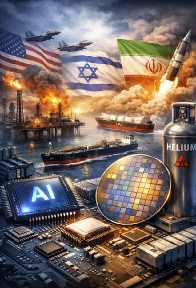 Dalam kondisi tersebut, dampak lanjutan bisa menjalar lebih luas. Industri semikonduktor yang sebelumnya sudah tertekan akibat perang dagang berisiko menghadapi gangguan tambahan dari sisi energi dan bahan baku.