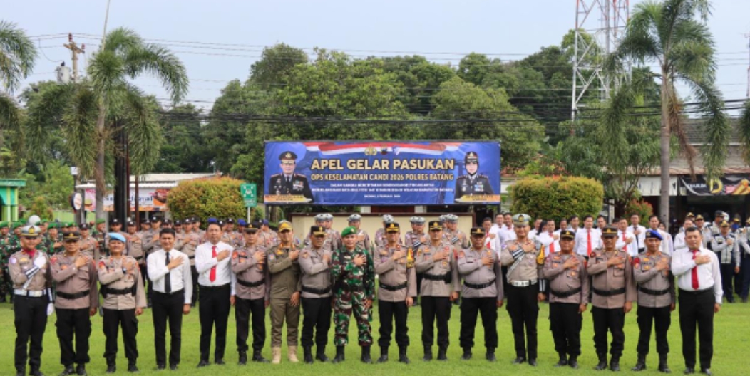 Mphnews – Batang – Polres Batang menggelar Apel Gelar Pasukan Operasi Keselamatan Candi 2026, Senin (2/2/2026). Apel tersebut dipimpin oleh Wakapolres Batang Kompol Indra Hartono dan diikuti para Pejabat Utama (PJU) Polres Batang, perwakilan Kodim 0736 Batang, Dishub Batang, Satpol PP Kabupaten Batang, para perwira, serta seluruh personel Polres Batang.