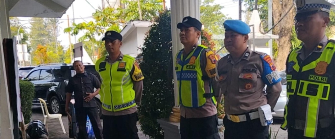 Dibawah kendali Kanit Regident Satlantas Ipda Sukendro, S.H. petugas pengamanan tampak melakukan penjagaan di sekitar lokasi gereja serta pengaturan aktivitas jemaat yang datang, guna memberikan rasa aman dan nyaman selama pelaksanaan ibadah.
