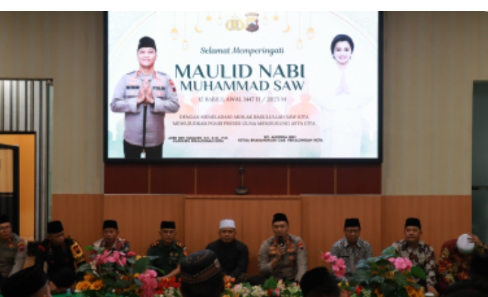 Dalam sambutannya, Kapolres menyampaikan bahwa kegiatan peringatan Maulid Nabi ini diharapkan dapat mempererat tali silaturahmi antara TNI, Polri, Pemerintah Kota, dan seluruh elemen masyarakat.