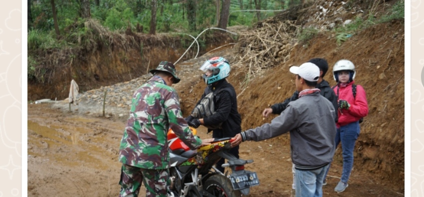Saat melintasi jalan tersebut, mereka sempat turun dari sepeda motor miliknya karena jalan berlumpur dan licin, Serma Ruslan salah satu anggota Satgas TMMD langsung menghampiri dan menolongnya.