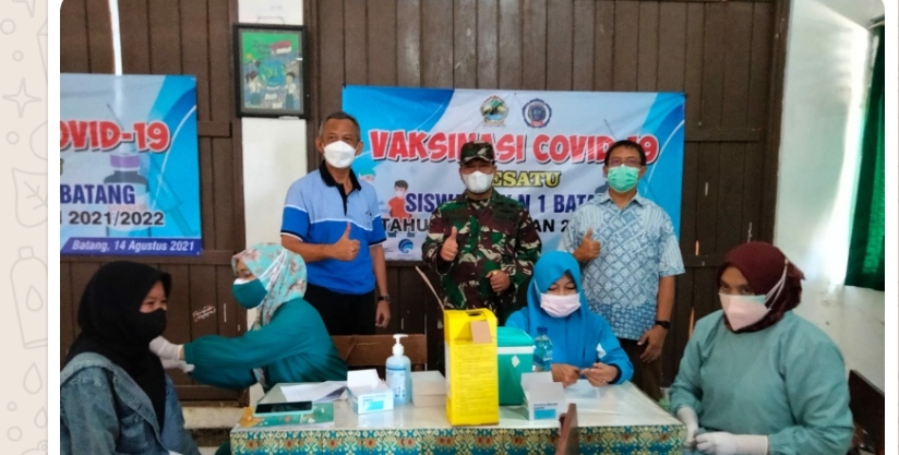 Vaksinasi disambut antusias oleh para siswa SMKN 1. “Terima kasih Bapak TNI saya sudah divaksin. Vaksin itu tidak sakit, tapi membuat kita sehat dan bisa melawan Covid-19 ,” kata salah satu pelajar kelas XII SMKN 1 Batang.